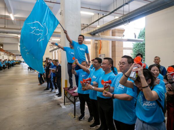 In his speech, YB Mohd Hairi shared that it was his first time officiating a flag-off ceremony in a car park. Despite the unusual setting, he expressed deep admiration for the unwavering spirit and courage of the SGM youths in facing adversity. He then led the entire crowd in a rousing three cheers of “Run for Peace!”, lifting the spirit of all present.