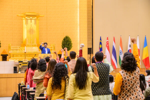 Johor youth division members lining up at the entrance to welcome SGI representatives from various countries, filling the venue with warmth and energy.In the Gosho study and question-and-answer session, SGI General Director Yoshiki Tanigawa urged the youth to forge connections through dialogue and action, and to cultivate hope in life.Young men’s division representative Dipayan Dasgupta, together with other youth representatives from India, raising their fists in determination, expressing their united resolve to strive all-out for kosen-rufu and peace.SGI General Director Yoshiki Tanigawa leading the planting of the “65th Anniversary of Kosen-rufu in Asia Commemorative Tree,” which symbolises the “many in body, one in mind” spirit of SGI members across Asia.South Korean youth representatives posing with the “Korea SGI Tree” at the SGI ACEC after planting it.Youth representatives from six countries calling out, “One world with Sensei! One Asia with Sensei!”