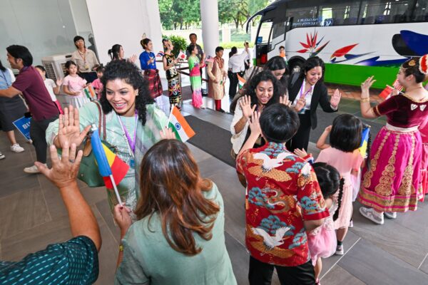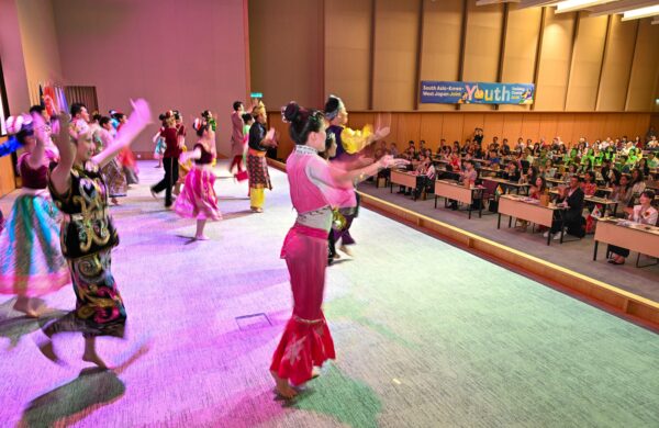 The youth representatives exchanging waves and high-fives with members of the welcoming team with brilliant smiles.SGM Johor’s Successor Dance Group presenting a vibrant dance to the tune of Malay traditional folk song Rasa Sayang, showcasing the beauty of harmony in diversity. The audience responded with enthusiastic applause and cheers.Youth representatives from Thailand waving in greeting, filling the hall with youthful energy and a spirit of cross-border friendship and unity.Youths engaging in lively interactions, their smiles bringing them closer and heartfelt dialogue strengthening friendship.Youths exchanging experiences and challenges in group discussions, encouraging one another.Youths from India experiencing magunatip (a Malaysian traditional bamboo dance from Sabah), bridging distances through lively interaction.Shoulder to shoulder, youth participants singing “This Is My Name,” sparking a wave of peace with their enthusiasm and determination.