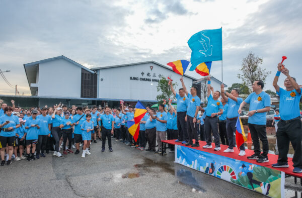 The morning of 7 September 2025 greeted the Muar Run for Peace event with a drizzle. But it did not dampen the enthusiasm of the nearly 1,500 participants and event staff who gathered at SJKC Chung Hwa Ketiga for the biennial event. The participants aim to embody the slogan “Peace Starts with Me!” and promoting the Sustainable Development Goals (SDGs). The skies cleared before the flag-off, and the run proceeded smoothly in a spirited atmosphere.