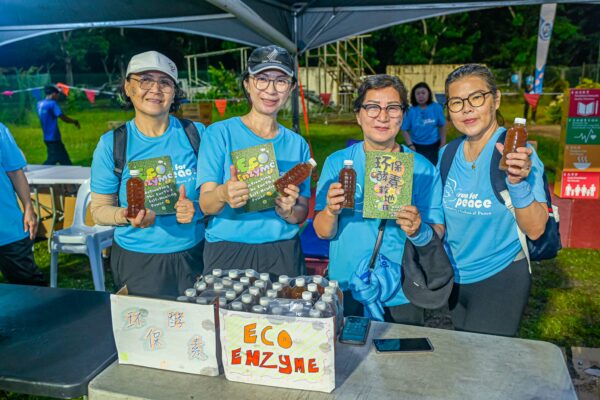 YB Vivian Wong (on podium holding air horn) flagged off the Sandakan Run for Peace.Participants warming up themselves for the run.Peace lovers from various backgrounds running together on the streets of Sandakan.SGM Sabah also provided handmade eco-enzyme for participants as souvenirs.