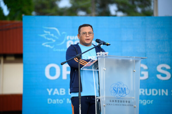 Selangor Menteri Besar YAB Dato’ Seri Amirudin Shari flagged off the run. In his speech prior to the flag-off, he lauded the aims of Run for Peace and praised SGM for its unwavering efforts and commitment over the past two decades. He noted that the Run for Peace has become an important platform for fostering national unity and spreading the ideals of peace. This is his second time flagging off Run for Peace, having first done so as a state executive councillor at the same venue in July 2017.