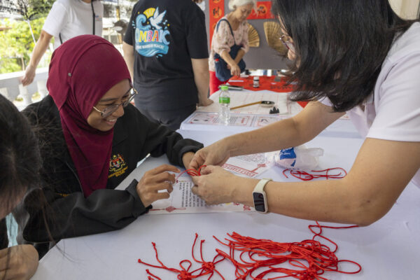 The junior division kicking off the show with a high-energy dance performance to the song “Be Brave!”Dr Balachandran (second from left) officiating the opening of the event.Following the opening ceremony, Dr Balachandran gains deeper insights into the “Seeds of Hope and Action” exhibition, guided by SGM General Council member Lim Tee Yen.Participants from different ethnic backgrounds experiencing the traditional craft of Chinese knot-tying.A Chinese calligraphy booth allowing participants to explore the charm and artistry of calligraphy.Participants beaming with heartwarming smiles while donating blood, embodying the beautiful spirit of kindness and humanity.