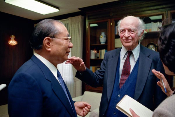 With Nobel Laureate Linus Pauling in California, February 1990 [© Seikyo Shimbun]