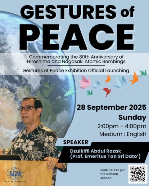 In solemn remembrance, we invite you to join us for a special online reflective talk titled Gestures of Peace, featuring Prof. Emeritus Tan Sri Dato’ Dzulkifli Abdul Razak. His father was the sole Malaysian survivor of the Hiroshima atomic bombing, and his family’s story stands as a powerful testament to the human cost of war and the enduring call for peace.