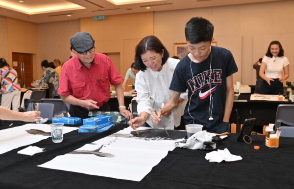 As part of the exhibition programmes, co-curator Chan Wen Xuan led a guided tour on 12 and 19 July, offering visitors deeper insights into the stories behind the exhibition. On 27 July, Hon Peow personally conducted a tour, explaining each piece in detail, followed by a Chinese ink painting workshop where participants had the rare opportunity to learn directly from the artist.