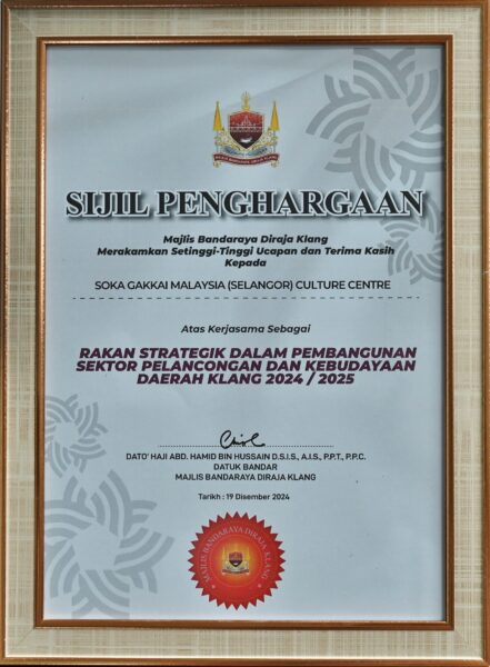 On 19 December 2024, the Klang Royal City Council (MBDK) presented a certificate of appreciation to SGM Selangor Culture Centre for its cooperation as a strategic partner in the development of Klang City’s tourism and culture. The certificate was presented by MBDK mayor Dato’ Haji Abd Hamid Hussain to SGM Selangor chairperson Steven Chee.