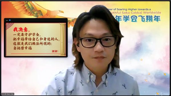 SGM men’s division leader Dr Christopher Boey led a study session on advancing kosen-rufu through sincere dialogue, emphasising the importance of compassion and listening earnestly to others.