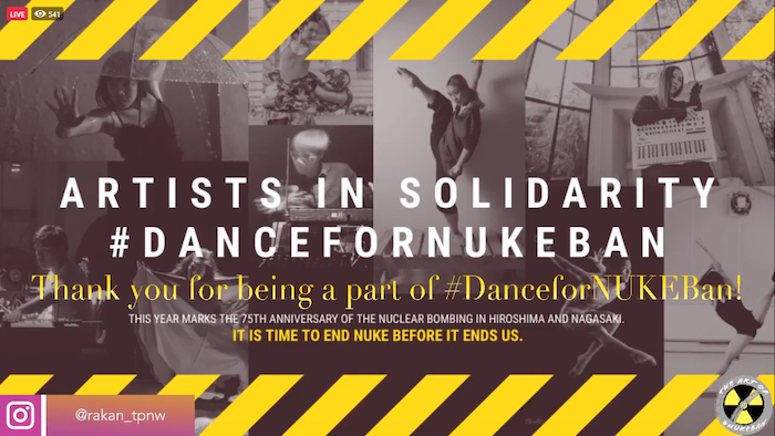 Co-director of #DanceforNUKEBan 2020!, Jia Xi Lee’s dance wrapped up the event and sought to optimise the use of art to reverse the idea of nuclear weapons as sexy, powerful, and essential for defence, and highlight them as the ultimate evil which should be abolished completely. She is also the director of Tarinao, a centre for information on creating values in society through the medium of dance across diverse fields.