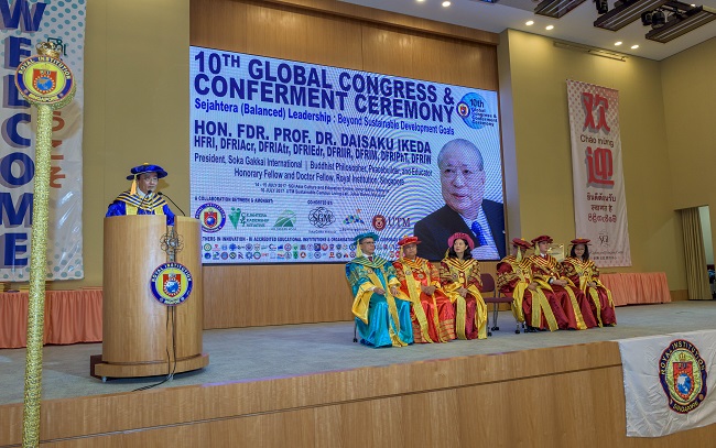In an message of appreciation, President Ikeda said: “I am well aware of the lofty tradition of your institution, which has made manifold contributions in the fields of peace, education and humanism over the years, in particular, by serving as the bridge to connect people around the world who pursue peace and harmonious solidarity….please be assured of my firm resolve to further contribute towards peace and humanism as a way to respond to your extraordinary generosity.” He also offered his prayers for the continued growth for RI.