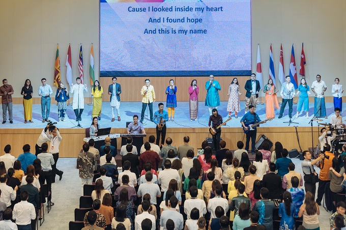 | Representatives from 8 countries sing together with all presented youth |