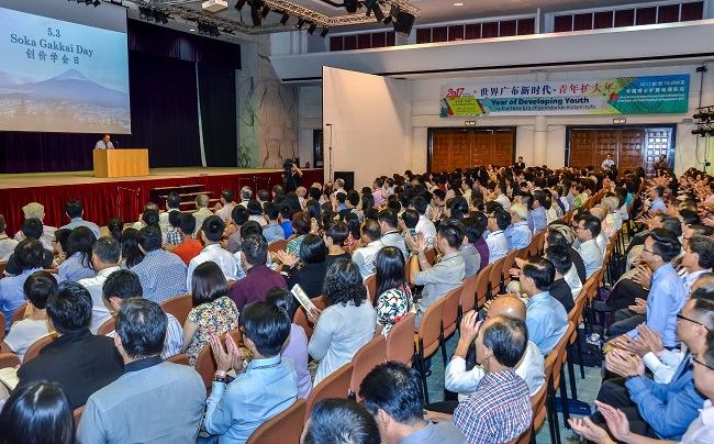 SGI President Ikeda sent a congratulatory message for this joyous occasion. He wrote: “The Soka Gakkai is the sole organisation that has inherited the Daishonin’s spirit, that is acting in exact accord with his teachings, and that has made kosen-rufu a reality in today’s world. With ever greater pride in this, let us continue to advance in harmony and unity.” He also urged members to strengthen their faith and realise their human revolution in order to encourage friends to create a fresh wave of kosen-rufu.