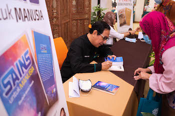 A series of activities were also held in conjunction with the launching ceremony. Prof Dr Kamarulnizam Abdullah from Universiti Utara Malaysia (UUM) created a video entitled World Peace Awareness; a book talk featuring two books, Sains untuk Manusia and The Ashes of Hiroshima, moderated by Mohd Khair Ngadiron, director of Malaysian National Book Council (MBKM) and panelled by Dr Mohamad Saleeh Rahamad from University of Malaya (UM). In addition, Mohd Faizal Aziz from MajalahSains was also present.