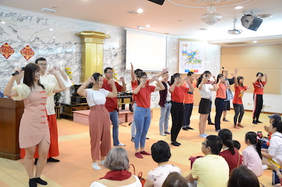 In Pahang, Eastern Area leader Lim Tee Yen encouraged the participants to create experiences in faith and share them in discussion meetings. He also asked them to expand the movement of encouraging people and sharing happiness, and take on the challenge of innovating the discussion meetings. Members of the culture groups and junior division added more spark with their performances, which included a lion dance and other dances.