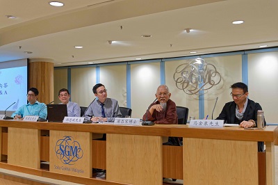 Four panellists led the discussion, namely Dr Cheah Thien Soong, president of Cao Tang Men Eastern Arts Society; Anthony Meh Kim Chuan, managing director of Dua Space Dance Theatre; Chew Chin Chong, treasurer of the Writers Association of Chinese Medium Malaysia and Tan Kok Leong, adviser to the SGM Study Department. They were representing various fields of arts, dance, literature and study respectively.