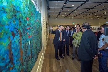 Prof Huang expressed his appreciation to SGM and TECO for organising this solo exhibition of his ink painting works. He pointed out that the long history of Chinese ink painting stresses moral inheritance, enlightenment, and harmony between self and nature. Ink wash painting also expresses the essence of spirituality.