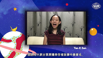 The dream of a world free from nuclear weapons is one shared by all people, even our future successors. To promote nuclear disarmament, the SGM junior division (JD) held an online peace talk titled “Journey to Banning the Nukes” on September 19. The hosts were JD members Raeka Leong Jen-Wynn, Ng Shi Zen, Ten E Zen, Khoo Kai Le, Ethan Cheng and Looi Jeannie. This is the first time the JD has embarked on such an activity.