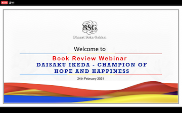 The first programme of the webinar series took place on February 24, 2021 and discussed the book entitled Daisaku Ikeda: Champion of hope and happiness, launched in Singapore on August 27, 2018, which Dr Radhakrishnan dedicated to President Ikeda for the SGI leader’s 90th birthday on January 2, 2018.
