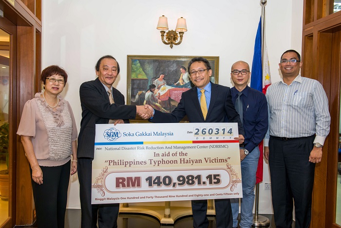 On 26 March 2014, Mr Koh Sia Feai, General Director of SGM presented the donation to the National Disaster Risk Reduction And Management Centre (NDRRMC) of the Philippines, received by Mr Medardo G. Macaraig, Minister and Consul-General, Embassy of the Philippines, Kuala Lumpur. The donation presentation was witnessed by Ms Katherine Chui, Mr Dinesh Chandren and Mr Chia Kok Peng from SGM. Ms Johann Veronical M. Andal, Third Secretary and Vice-Consul of the Embassy was also present during the presentation.