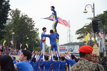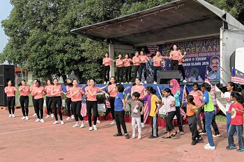 For this celebration, SGM fielded 30 youth division members who were integrated into a team of performers made up of several divisions. Together, during the opening, they sang patriotic songs, danced and acted out a short drama highlighting the significant moments of the history of Malaysia leading up to the present moment, emphasising the importance of patriotism, national struggle and harmony. The dangers of abuse of power and corruption were also included in the storyline.