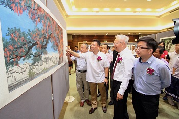 Artist Bai was deeply engrossed in the style of architecture in Anhui, China. He often used Chinese ink and pastel colours to show the characteristic of the buildings, such as high walls and deep courtyards, black and white colours wharf walls, exquisite bricks and all kinds of sculptures. These were also the theme of this exhibition.