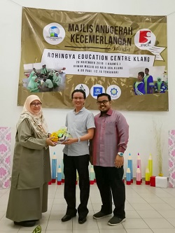 On November 28, 2019, SGM Selangor presented 12 boxes of stationery for the benefit of Rohingya children at the Klang Rohingya Education Centre (REC). These stationery – which included notebooks, drawing paper and coloured pencils – were received by Jaringan Global Islam Masa Depan (JREC) executive director Nur Azlina Abdul Aziz. JREC is a non-governmental organisation that runs five RECs in several states providing education to 850 Rohingya refugee children currently in Malaysia.