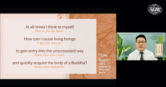 From June 13 to July 13, SGM streamed online Gosho study videos on the SGM Broadcast Channel Official on YouTube, attracting over 15,000 views for both Mandarin and English videos. SGM youth division leader Andrew Looi was the speaker for the Chinese video, while SGM Selangor state young men’s division vice-leader Bernard Wong presented the English study.