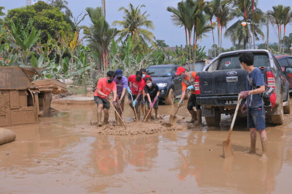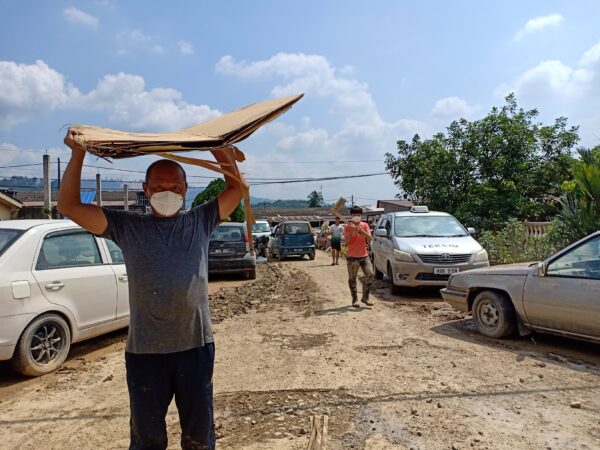 On December 23 and 25, 2021, with joint efforts from Unit Tindak DAP Bangi and volunteers from other groups, SGM volunteers in Kuala Lumpur helped to clear the mud and clean the surroundings of Kampung Batu 10, Cheras, and Kampung Melaka, Hulu Langat, which were both severely hit by the recent flash flood.