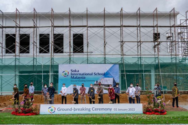 Being the first international school bearing the name of “Soka,” Soka International School Malaysia (SISM) aims to open its doors in 2023 after holding its groundbreaking ceremony on 2 January 2022, which also celebrates the 94th birthday of Daisaku Ikeda, the school’s founder. The ceremony was held in hybrid at the school site located in Seremban, Negeri Sembilan, as well as online.