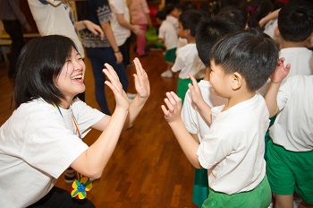TSS children welcomed the visitors with lively exercise movements, and the visitors reciprocated by teaching them and leading a dance. The children were delighted and every one roared with laughter when the SUJ students played a “Guess the names of the animals” game with them. The big brothers and sisters also prepared origami crafts for them as tokens of friendship.