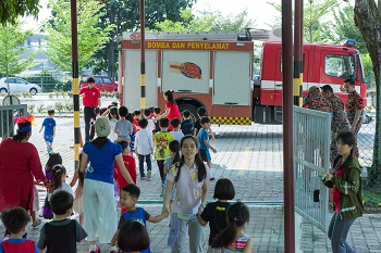 In 2017, the children learned about fire safety on the grounds of TSS on Children’s Day itself. In addition to learning of the responsibilities of fire fighters, they also learnt about what they should do should a fire break out, such as proceeding to a designated assembly point under the instruction of teachers.