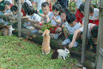 Upon arriving, the children were given a brief introduction of organic farming before being divided into two groups for more focused learning. They fed vegetables to farm animals such as ducks and rabbits and learnt how to make organic fertiliser with animal faeces.