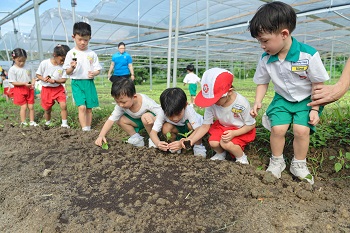 Some of the children were initially hesitant to participate in the activities, but after seeing their classmates enjoying themselves, they joined in too. Though the weather was hot and the children were sweating, the activity provided a rich experience beyond TSS’ grounds and taught them how to appreciate food even more.