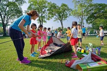 TSS teachers, staff and volunteers also prepared activities to help children learn how to protect Mother Earth. On Day 1, they had a “camp fire night”, and played games such as “Carpool”, “Exploring in the Dark” and “Plastic.” The following day, they carried out more activities based on the theme “Let’s Protect Our Only Home – Mother Earth.” They planted onions, made their own recyclable bags and handicraft out of recycled material. Teachers helped the young environmental champions to understand the idea of reusing and recycling.