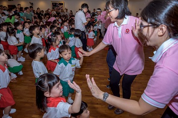 In her speech, TSS principal Lye Loy Hou warmly encouraged the children to play, learn and enjoy themselves to their hearts’ content at TSS. She also urged the children to make three promises of TSS with founder Mr Daisaku Ikeda, that is to be in high spirits every day, say “thank you” to everyone courteously and cherish their friends. Finally, she asked the parents of the children to play an active part in TSS’ activities.