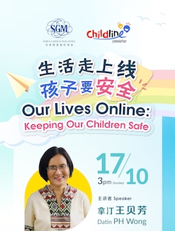 Datin PH Wong will highlight some issues on cyberbullying, game disorders, social media addictions, online child safety and child protection. Join us to find out more how our children’s interests, safety and well-being should be our priority!