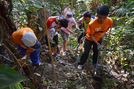 SGI President Daisaku Ikeda wrote: “Every single thing in existence is worthy of supreme reverence. Nature is not something for human beings to exploit as they see fit, solely for their own interests. Both nature and humanity are part – and at the same time complete expressions – of the life of the universe. To destroy the natural world is to destroy human life.” With this spirit in mind, members of SGM Kuala Lumpur’s Region 2 (which covers Petaling Jaya, Sungai Buloh and Ijok) participated in the “Trees for Life” tree-planting campaign at the Bukit Gasing Forest Park in Bukit Gasing, Petaling Jaya on June 29, 2013.