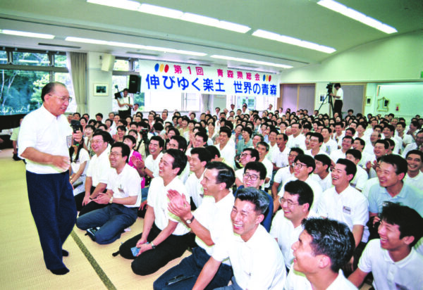 时隔 15 年再访青森的池田先生说:“看到各位精神奕奕,真是高兴。”“各位是永远光荣的开拓者。诸天善神、三世诸佛、日莲大圣人一定会守护大家。”(1994 年 8 月 26 日,东北研修道场)