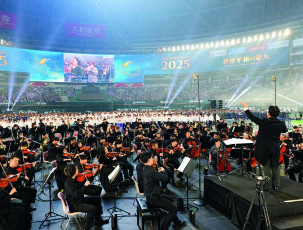为本次演出特别组建的“2025 亚洲和平节管弦乐团”,在指挥家饭田大介执棒下,奏响凝聚 50000 人心灵的磅礴乐章。