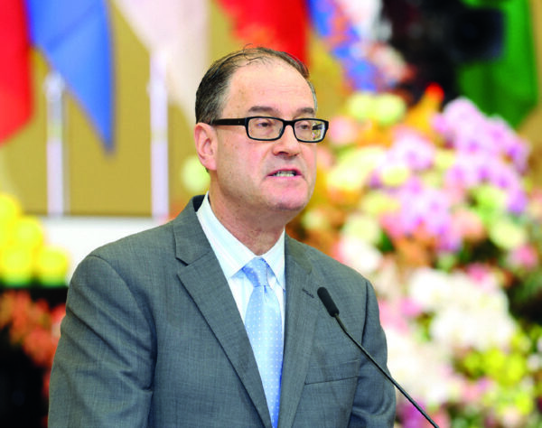 第一次站在这个讲台时,仰望着牧口先生和户田先生的肖像,我心中充满敬畏,感受责任重大。今日,在池田先生肖像的注视下,我心中涌动着感动、感谢与决意。谨代表美国池田门人发表推进广布的决意,请多多指教。