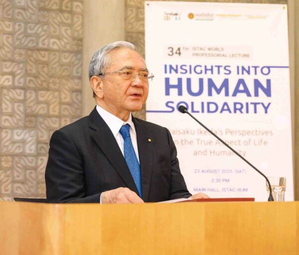2025年8月23日,马来西亚的和平、文化、教育运动迎来重要里程碑。创价学会会长原田稔在马来西亚国际伊斯兰大学国际伊斯兰思想与文明研究院(ISTAC-IIUM)的第34届“ISTAC世界教授讲座”,以“人类团结的洞察:池田大作的生命与人性观”为题发表演讲。