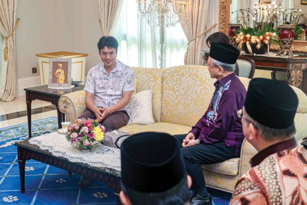 8月24日,原田会长、谷川SGI理事长、许锡辉SGM理事长等一行,前往吉隆坡森美兰王宫,拜会森州王子东姑再因阿比丁。