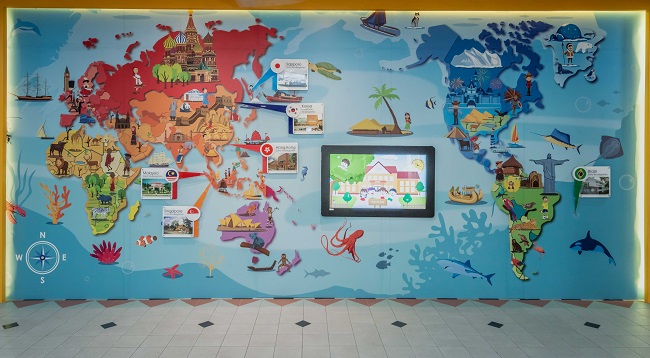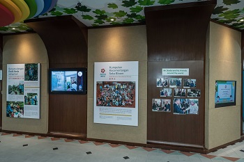 创办人专区包含池田先生赠予园生的布偶与玩具摆设处、世界各地创幼的地图、毕业生证言、由孩子绘画的创办人一生简介,以及创幼教育方针与格言等。