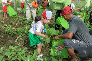 园生也体验采摘蔬菜的乐趣,并将蔬菜带回家,与家人一同享用新鲜的有机蔬菜。午餐时间,园生们身处农场,享用由有机食材烹煮的午餐,别有一番滋味。他们实践“珍惜食物”的教诲,将食物一扫而空。