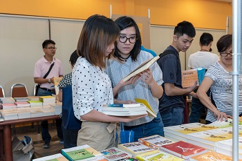 现场有海内外逾三百三十种书籍,分成马来文、英文、特选书籍、对谈集、金龄、青少年、儿童、教育、教学与指导,以及新会员等区块,方便读者选书。
