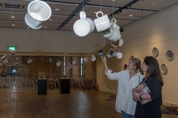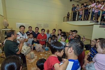 陶艺注重触觉与感觉,展区特别设立一个活动区,让观者在艺术家陪伴下触摸陶器。此外,谢有成亦在两场的活动现场示范陶艺创作。他用心、耐心搓泥、揉泥、在坯车上拉坯,让陶艺更贴近大众生活,并展现陶艺之美的价值。