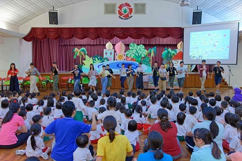 一行人受到教职员的热情迎迓,园生也亲自为来访者戴上手工绘制的花项链,并献上活泼的舞蹈及唱园歌。