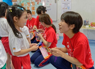 创办人曾于学园生入学典礼举出“打招呼”“珍视朋友”与“不屈服”三个重要实践。创大生别具心思,将三个实践纳入游戏,与园生玩的不亦乐乎。双方超越语言差异,打成一片,缔结美好的回忆与友情。