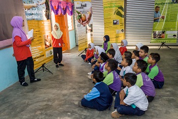 该校安排20位小六生接受培训,为学弟妹们解说展览内容。小学生们学习态度认真,愉快学习。他们也透过观看《宁静的革命》短片,体会到保护环境的重要。