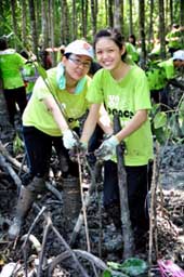参与植树活动的学会员,年龄介于14至60岁。他们虽然双手沾满污泥,双足陷入沼泽地之中,但是仍然愉快地种植一棵棵的红树苗。